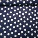 Látka tmavomodrá s veľkými bodkami Bavlnená látka tmavomodrej farby s veľkými bielymi bodkami.