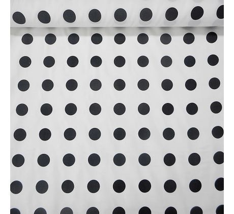 Bavlnená látka bielej farby s 2cm čiernymi bodkami.