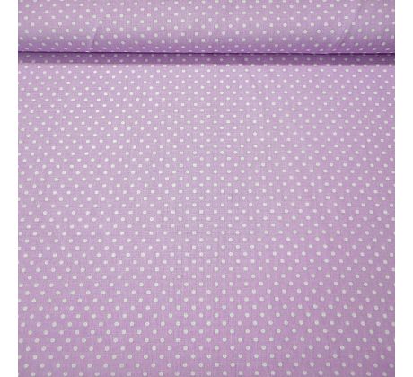 Bavlnená látka fialovej farby s bielymi bodkami.