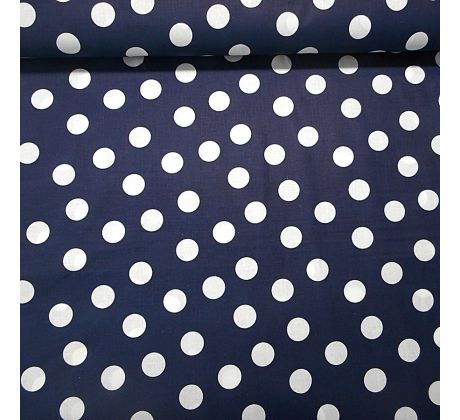 Bavlnená látka tmavomodrej farby s veľkými bielymi bodkami.