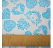 Bavlnená látka bielej farby s tyrkysovými ornamentovými srdiečkami.